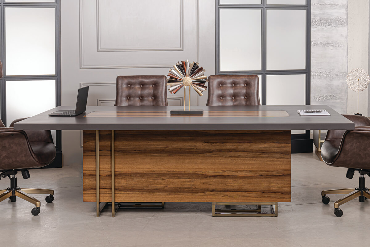 Lüks tasarımıyla ofisinize şıklık katan toplantı masası.